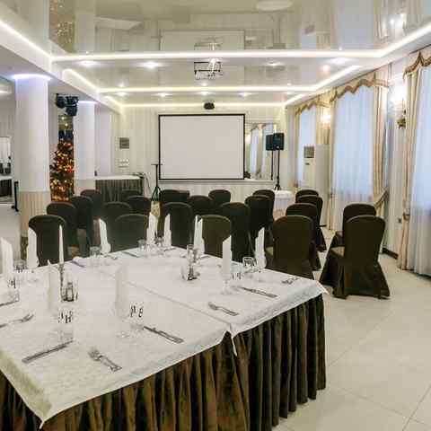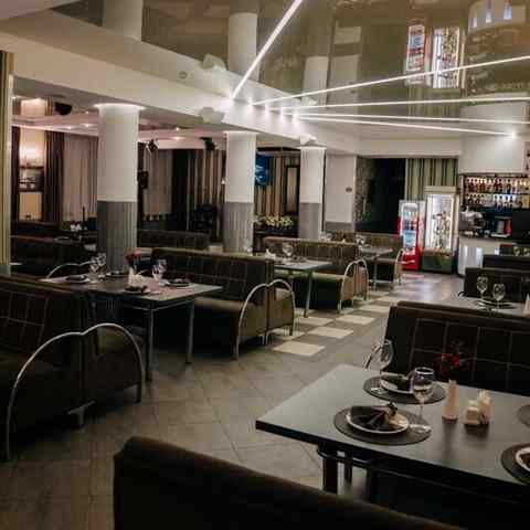 Ресторан включает два просторных зала вместимостью до 60 человек каждый, а также застеклённую веранду, рассчитанную на камерные мероприятия до 25 гостей. Основной зал оснащён сценой, танцполом и светомузыкой, что делает его удобным для событий с развлекательной программой. Интерьер оформлен в сдержанном стиле, с тёплым освещением и комфортной мебелью. По выходным в заведении звучит живая музыка. Формат ресторана позволяет проводить как повседневные, так и особенные встречи: деловые обеды, ужины в семейном кругу, встречи с друзьями.